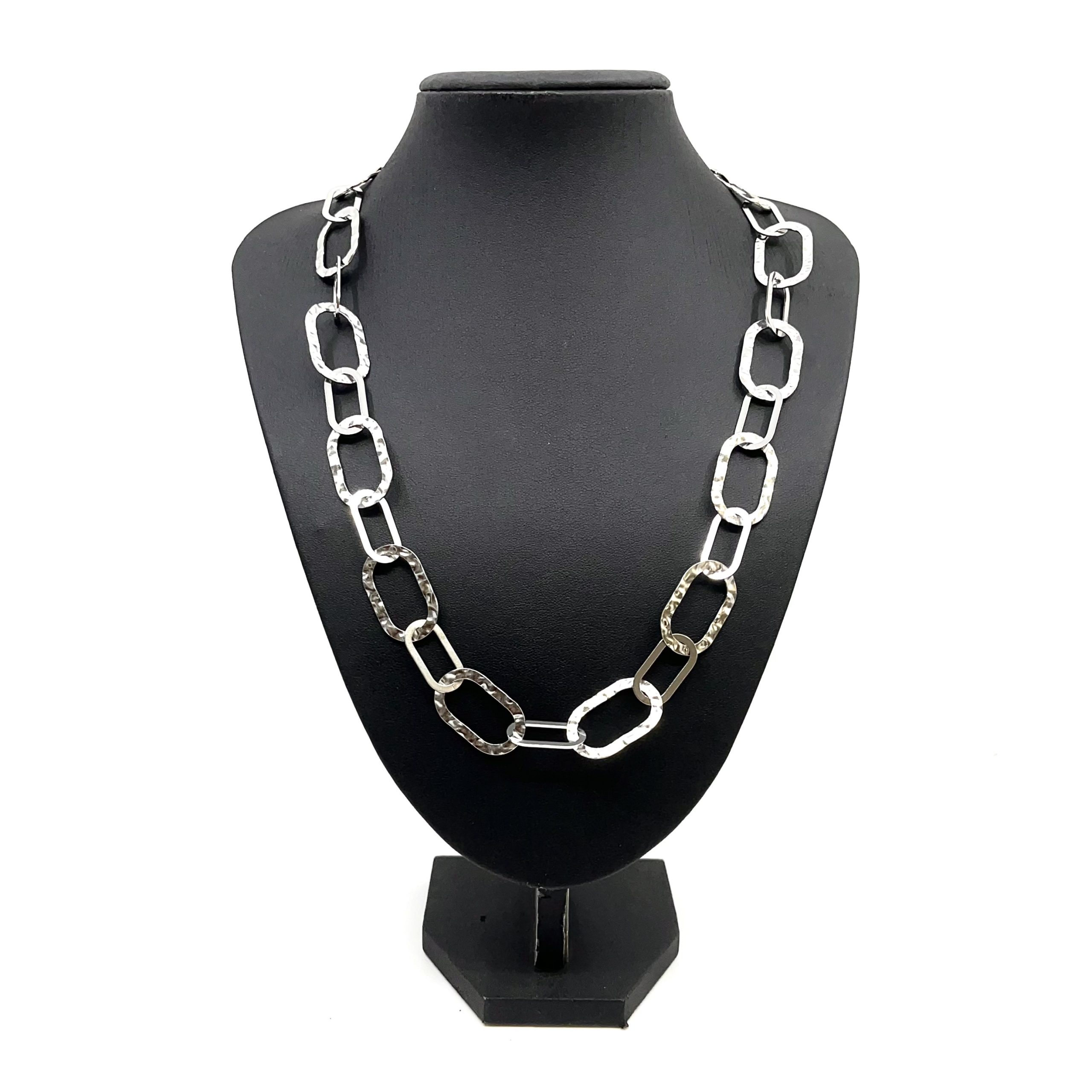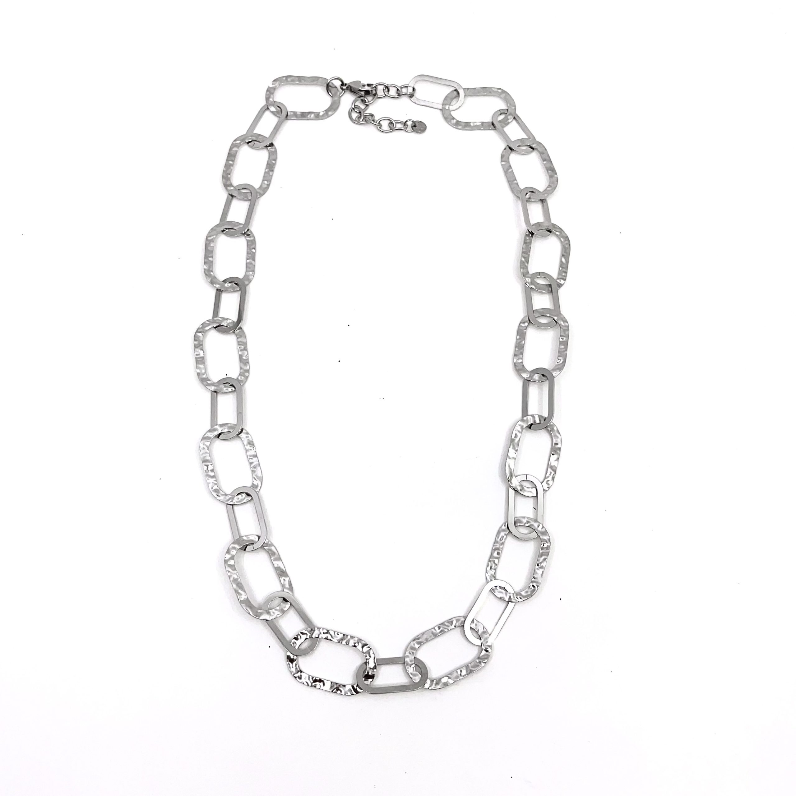 Κολιέ αλυσίδα από ανοξείδωτο ατσάλι 316L σε χρώμα ασημί. Μεγάλοι σφυρήλατοι κρίκοι ενωμένοι κάθετα με πιο μικρούς ώστε να δημιουργούν περισσότερο όγκο στο κόσμημα. Φόρεσέ το κάθε μέρα και όλες τις ώρες, δημιουργώντας ένα ultra stylish look!